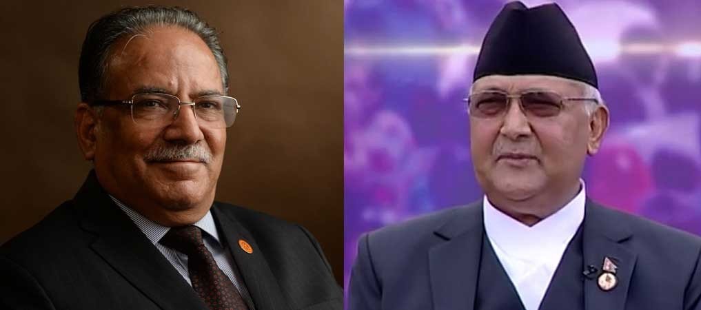 काठमाडौं, असोज २२ गते । नेपाल कम्युनिष्ट पार्टी (नेकपा) का दुई अध्यक्ष केपी शर्मा ओली तथा पुष्पकमल दाहाल ‘प्रचण्ड’बीच प्रधानमन्त्रीको सरकारी निवास बालुवाटारमा भएको बैठक सकिएको छ । बैठकमा पार्टीको सांगठनिक एकताका बाँकी काम चाँडै सम्पन्न गर्ने प्रतिवद्धता अध्यक्षद्वयले जनाउनुभएको छ ।