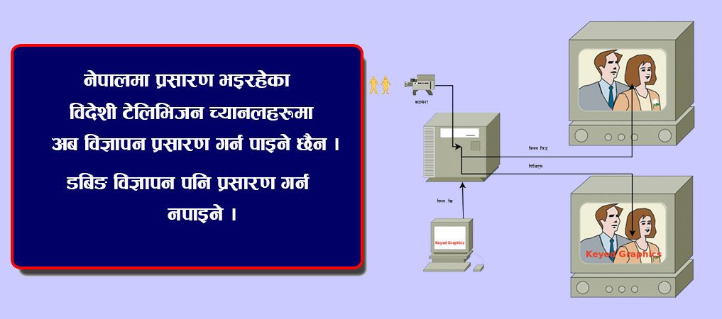 गराएको थियो । ऐनअनुसार शुक्रबार रातिसम्म विदेशी च्यानलसँग डाउनलिङ्क गरी प्रसारण गर्न सम्झौता गरिसकेका संस्थाहरूले विज्ञापनरहित च्यानल प्रसारण गर्नुपर्ने छ । त्यस्तै विदेशी विज्ञापनलाई नेपालका सञ्चार माध्यमले अबदेखि डबिङ गरेर पनि प्रसारण गर्न पाउने छैनन् ।