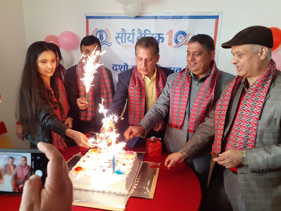 काठमाडौं । सौर्य राष्ट्रिय दैनिक पत्रिकाको १०औँ वार्षिकोत्वसव सम्पन्न भएको छ । आफ्नै केन्द्रीय कार्यालय पानीपोखरीमा आज राष्ट्रिय प्रजातन्त्रको दिन उक्त पत्रिकाले १०औँ वार्षिकोत्सव मनाएको हो । कार्यक्रममा विज्ञापन दातालगायत विभिन्न व्यक्तिहरुको सहभागीता रहेको थियो ।
