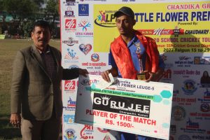 धनगढी/धनगढीमा जारी विद्यालयस्तरीय राष्ट्रिय क्रिकेट प्रतियोगिता चण्डिका ग्रुप लिटल फ्लावर प्रिमियर लिग (एलपिएल) अन्तरगत आज भएका खेलमा रुपन्देहीको न्यू एकेडेमी र काठमाडौँको हिमालयन ह्याइट हाउस विजयी भएको छ ।