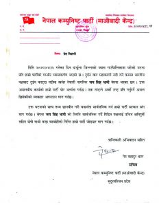 नेकपा माअेवादी केन्द्र सुदूरपश्चिम प्रदेश समितिले आज एक प्रेस विज्ञप्ति जारी गर्दै दार्चुलाको घटनाप्रति आप्mनो गम्भीर ध्यानाकर्षण भएको जनाएको छ ।