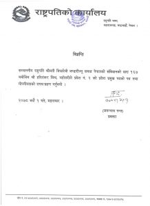 राष्ट्रपति कार्यालयद्वारा जारी विज्ञप्तीमा भनिएको छ, ‘सम्माननीय राष्ट्रपति श्रीमति वद्यादेवी भण्डारीज्यू समक्ष नेपालको संवधानको धारा १६७ बमोजिम श्री हरिशंकर मिश्र, महोत्तरीले प्रदेश नं. २ को प्रदेश प्रमुख पदको पद तथा गोपनीयताको शपथ ग्रहण गर्नुभयो ।’