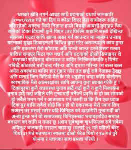 गत मंगलबार राति टीकापुरस्थित भावना होटलमा बसिरहेको एक अपराधिक समूहले होटलको बत्ती निभाएर नियोजित र षड्यन्त्रपुर्वक तरिकाले सांघातिक हमला गर्को जैसीले समेत सामाजिक सञ्जालबाट जानकारी गराएका छन् ।