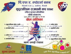 धनगढी/धनगढीमा हुने सुदूरपश्चिम राजधानी कप २०७९ को ट्रफी र खेल तालिका सार्वजनिक भएको छ । असोज ८ गतेदेखि १५ गतेसम्म धनगढीमा हुने फुटबल प्रतियोगिताको ट्रफी र खेल तालिका सार्वजनिक गरिएको हो ।