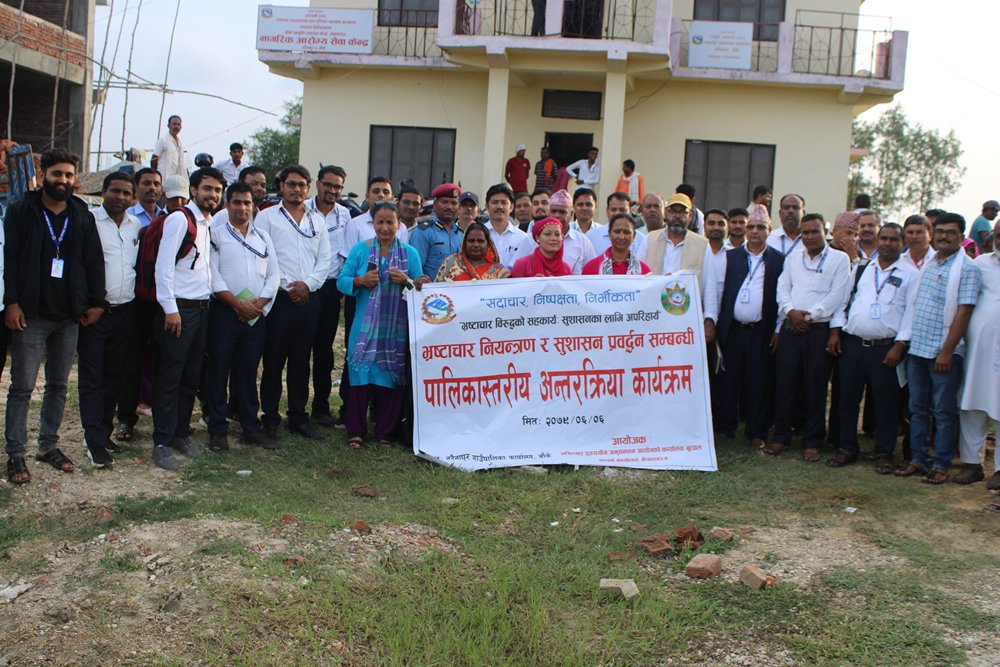 गाँउपालिका उपाध्यक्ष जयन्ती देबी श्रीवस्तवले अख्तियारको एक्लो प्रयासले मात्र भ्रष्टाचार नियन्त्रण नहुने हुँदा भ्रष्टचार रोक्न सबैको सहकार्य र समन्वय आवश्यक रहेको बताउनु भएको थियो । उहाँले पालिकाबाट आफूहरुले भ्रष्टाचार नियन्त्रण गर्न सहयोग गर्ने प्रतिबद्धता व्यक्त गर्नु भएको थियो ।