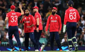 इंग्ल्याण्डका साम कुरानले ३ विकेट लिए । उनले ४ ओभरमा १२ रनमात्र खर्चिए । आदिल रशिद र क्रिश जोर्डनले २ तथा बेन स्टोक्सले १ विकेट लिए ।