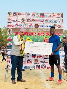 कोहलपुर नगरपालिका प्रमुख पूर्ण प्रसाद आचार्यले म्यान अफ द म्याच क्यामरुनका मोसेस टुवालाई नगद ५ हजार हस्तान्तरण गरेका थिए ।